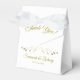 Estas obrigados que você favorece as caixas são a maneira perfeita de obrigado membros da sua festa de casamento por fazerem parte do seu dia especial. Preencha com doces, favores de casamento ou presentes. Projetados como parte do nosso Gold Foil Wedding Suite, eles apresentam um texto simples, mas elegante, com design de guião de ouro sobre fundo branco com uma falsa borda floral de folha fina. Totalmente personalizável para que você possa digitar as informações necessárias.