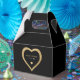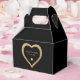 Caixa de favorecimento do coração negro e dourado. Personalize-o com os detalhes do evento.
