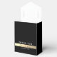 Elegante, vintage, boho chic, caixa de favores de casamento preto e branco, com ouro dourado e renda floral prateada.