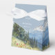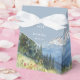 Estas caixas de lembrança de casamento com montanha em aquarela azul empoeirado podem ser personalizadas com suas informações em tipografia moderna. Desenhado por Thisisnotme©