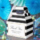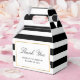Personalize facilmente estas caixas de favoritos de casamento listradas a preto e branco com os seus detalhes de casamento. Esse obrigado personalizado que você favorece as caixas pode ser personalizado para outras ocasiões, como aniversários, noivas ou chás de fraldas.