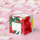 Esta caixa de favoritos personalizada apresenta um tema de casamento de praia tropical ou ilha. O fundo é um branco simples e elegante com flores tropicais e coloridas do Havaí. Buquês com palmeiras, hibisco e flores de frangipani cobrir a caixa.