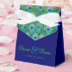 Lindas caixas de lembranças de casamento de pavão azul real e verde. Estas caixas de lembranças de casamento de penas de pavão elegantes podem ser personalizadas com seu texto, cor de fundo e cor da fita.