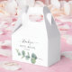 Aprecie seus hóspedes com um toque maravilhosamente coordenado usando esta caixa de favorecimento de eucalipto verde. Apresentando um script elegante, fontes de serif clássicas e uma ilustração de eucalipto de aquarela, esta caixa personalizável inclui um obrigado que você envia e os nomes e a data do casal. Perfeito para casamentos rústicos, jardins ou minimalistas, é ideal para empacotar doces, guardiões ou minipresentes no estilo botânico do eterno.