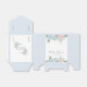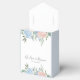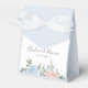 Caixa romântica de favores florais com azuis empoeirados e pinks.