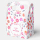 Jardim Brilhante de flores cor-de-rosa e laranja modernas, em um padrão espalhado sobre fundo branco. Bonito e vibrante com uma nova sensação boêmica. Uma bela caixa de favores coordenadora para combinar com a sua festa. Você pode alterar o texto para se adequar à sua celebração.