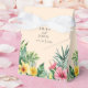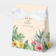 Estas caixas de lembrança de casamento de flores tropicais de aquarela moderna em pêssego com folhagens podem ser personalizadas com suas informações em tipografia elegante. Projetado por Thisisnotme©