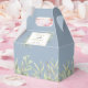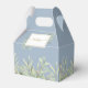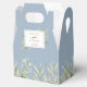 Caixa de lembrança de casamento de folhas de verdura macia elegante com folhas delicadas em aquarela em um fundo azul poeirento emoldurando seus nomes e data especial em tipografia moderna. A parte de trás tem uma mensagem de agradecimento em escrita dourada. Uma maneira perfeita de dizer obrigado aos seus convidados! Desenhado por Thisisnotme©