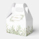 Elegante verde macio deixa a caixa de favoritos para casamento com folhas de aquarela delicadas que enquadram seus nomes e data especial definida na tipografia moderna. A parte de trás tem um obrigado de script ouro que você envia. Uma maneira perfeita de dizer obrigado aos seus hóspedes! Projetado por Thisnotme©