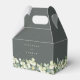 Casamento no inverno verde de cinza escura e elegante favorece caixas com borda de morangos pintados à mão e eucalipto. Todo o texto é totalmente editável para que você possa facilmente alterar o estilo/cor/tamanho da fonte e excluir ou mover o texto. Elementos de coordenação disponíveis. Anote o tamanho da caixa antes de fazer o pedido.