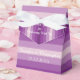 Que maravilhosa Caixa de Favor do Partido personalizado para um Casamento ou outra ocasião especial. Esta Favor Box é decorada com um padrão de listras roxas. Na frente, Nomes e Data do Evento em branco. Na frente e atrás "Obrigado por Celebrar Conosco" (ou pelo seu texto personalizado). Uma fita branca completa o olhar festivo. Uma caixa de favores moderna, elegante e chic Wedding. Todos os Direitos Reservados © 2015 Alan & Marcia Socolik.