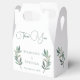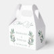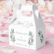 Um simples roteiro de caligrafia verde elegante, com uma folha de eucalipto aquática em ambos os lados, na parte inferior, para decorar esta bela e minimalista caixa de favorecimento do partido casamento outono. Uma adorável design de casamento da noite para uma ocasião de jardim à noite.