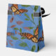 Lindas borboletas monarcas com seu ouro e cor de queda laranja se acendem sobre um fundo azul médio, sutis botânicos e silhuetas borboletas. Faça com que esta caixa de presentes faça parte do seu casamento outono mágico como uma caixa de presentes de hóspedes ou de boas-vindas. Personalizado com seu nome de casal Mais estilos disponíveis.