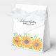 Girassóis trazem alegria! Esta encantadora caixa de favores do Casamento é decorada com um design original de girassóis e folhagem. Personalize-o com os seus nomes e a data do seu dia especial. Original Watercolor © Michele Davies.