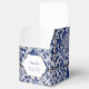 Este design apresenta padrões azulejos portugueses russos. O texto do casamento é elegantemente enquadrado com uma forma geométrica branca e dourada. Azulejo único, azul e branco, de casamento floral, é a caixa design com elementos modernos. Os convites de casamento e outros artigos de papelaria também estão disponíveis.