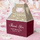 Obrigado de casamento Rustic Burgundy, você favorece a caixa inspirada em burlap e nas lanternas. Estas caixas de adivinhação com textura rústica são perfeitas para uma festa de casamento rusticada. Personalize facilmente as nossas caixas de favoritos de casamento cheias com os seus detalhes de eventos. Esse obrigado que você favorece as caixas pode ser facilmente personalizado para outras ocasiões, como chás de panela rústicos.