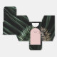 Arcos brancos e rosados sobre estoque de papelão inspiraram um esquema de cores com fundo de palma escuro com monograma em cinzas e ilustrações de folha de palma de aquarela com nome e data.