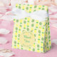 Esta caixa de favoritos incrível apresenta um padrão de frutas de abacaxi amarelo tropical com topos verdes e folhas bonito de palma verde-claro. Ideal para um Casamento Termal Tropical ou Verão. Há um círculo amarelo com padrões brancos marmoreados que contém texto personalizável para que você possa personalizar este design.
