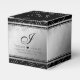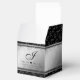 Celebre o aniversário do casamento de 11 em estilo com esta caixa de favor comemorativa! Escrito preto elegante e letras serif em um fundo de aço vestido revestido de diamante revestido com bares pretos adicionam um toque memorável para esta ocasião especial e marco. Personalize com os nomes de casais felizes, adicione um primeiro ou um monograma para seu sobrenome e adicione datas para seu aniversário de aço. Mensagens personalizadas podem ser adicionadas aos painéis superior e lateral. Design © W.H. Sim. Mais informações em zazzle.com/expressionsoccasions