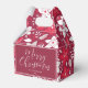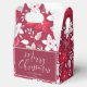 Uma caixa de favoritos formal com tema de feriado da sua família para os seus convidados. Apresenta flores selvagens no estilo natalício com cores vermelha, branca e rosa.