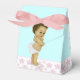 Adorável cor-de-rosa e azul-lacre chá de fraldas afro-americano favorece caixas. Você pode adicionar texto, mudar a cor do arco e adicionar uma cor de fundo de sua escolha a esta bonitinha caixa de favorecimento de chá de fraldas da princesa étnica rosa.
