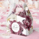 Uma caixa de lembrancinhas de chá de panela ultra-feminina que captura a essência da elegância rústica com sua exibição abundante de peônias em tons harmoniosos de burgundy profundo, ameixa, rosa poeirento e marfim suave. Os elementos botânicos femininos são combinados como se estivessem em um suntuoso buquê de jardim e tornam o entretenimento dos seus convidados tão agradável! O texto manuscrito em estilo moderno escreve "Bridal" em um estilo encantador. Personalize o modelo de texto com o nome da Noiva.