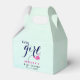 Esta caixa de favoritos para um chá de menina é encantadoramente decorada com uma mistura de tons rosas e azuis marinhos fuchsia. A frase "Menina" é elegantemente mostrada na tipografia azul marinho, dando um toque de sofisticação. Contra um pano de fundo azul macio, uma deliciosa baleia rosa-quente fuchsia brava brinchosamente corações, criando um ambiente caprichoso e delicioso. Para torná-lo único, incorpora-se também o nome da mãe expectante, fazer-a uma recordação apreciada do evento.