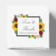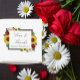 O design apresenta girassóis, rosas e margaridas elegantes com uma paleta de cores de outono amarelo dourado, vermelho e branco. O design também apresenta uma moldura cinza carvão. Você pode alterar a cor do fundo na frente e no verso para a cor de sua escolha ou deixar ambos configurados para branco.