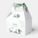 Caixas de lembranças elegantes para chá de noiva com tema botânico de eucalipto verde, branco com fundo rosa em aquarela. Perfeito para tratar seus convidados e mostrar sua gratidão por celebrarem este dia especial com você.