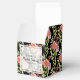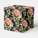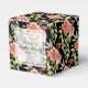 Belas flores cor-de-rosa e vermelhas em aquarela e folhagens elegantes em um fundo preto destacam estas caixas de 2" para lembrancinhas de festa de chá de noiva. Itens COMBINANDO em nossa loja.