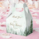 Estas caixas de lembrancinhas para chá de bebê da floresta de pinheiros em aquarela rústica e elegante podem ser personalizadas com suas informações em tipografia moderna. Projetado por Thisisnotme©