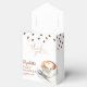 Essas caixas de lembrancinhas para chá de bebê elegantes apresentam grãos de café e uma xícara de café, juntamente com uma tipografia elegante que pode ser personalizada com seu nome e data especial. Criado por Thisisnotme©