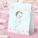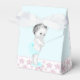 Caixas de chá de fraldas cor-de-rosa e azul-lacrimejante. Você pode adicionar texto, mudar a cor do arco e adicionar uma cor de fundo de sua escolha a esta caixa de favorecimento do chá de fraldas princesa rosa giro.