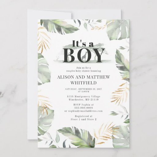 Jungle Safari Palm Leaves Baby Shower InvitationCriado por S A Holmes