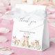 Caixa de Favoritos de Chás de fraldas Bonitos com uma cena pintada de aquarela com animais de floresta em uma floresta e "obrigado você" em uma letra de escrita caprichosa junto com seu nome e data. Estas caixas de chá de fraldas rústicas são neutras em relação ao sexo, por isso, estão excelentes se você está tendo um filho ou uma menina.