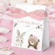 Aprecie seus convidados com esta encantadora caixa de chá de fraldas temerária. Apresentando adoráveis animais de floresta aquarela com coroas florais e tons de blush suaves, é o toque perfeito para uma celebração de menina. O tamanho do petite é ideal para pequenos doces, cestos, ou guardas de coração. Seja exibido na mesa ou entregue como presentes obrigado-você, esta caixa de favoritos adiciona elegância e personalidade à decoração do evento. Projetado para combinar o seu tema de festa boho Woodland lindamente.