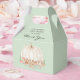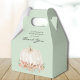 Esta caixa de favorecimento do chá de fraldas de outono apresenta uma abóbora aquarela e verde em um fundo verde macio. Perfeito para um chá de fraldas de outono, seja para um menino, uma menina ou um bebê neutro em termos de gênero. Facilmente personalizável. Original Watercolor © Michele Davies.