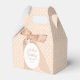 Tema do Chá de fraldas do Arco de pêssego. Matiz de pêssego de verão para um na moda, diversão e chá de fraldas bonito. Peach-y buff fundo com bolinhas, grande arco de gingham no estilo rústico, com tipografia atraente. Grande crachá oval com nome, evento e data. Crie uma cor peachy buff, chá com tema de arco com detalhes delicados. Dovetails perfeitamente com grandes arcos, balões e bebidas criativas e comidas. Arco e "obrigado você" atrás. Todo texto é personalizável dentro da ferramenta Zazzle design.