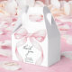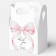 Adicione um toque de charme e sofisticação aos favores do seu chá de fraldas com estas caixas de obrigado maravilhosamente projetadas - você é perfeito para chás de fraldas clássicos, coqueteiros ou parisienses. Apresentando um arco de coquetes de aquarela cor-de-rosa suave e uma caligrafia elegante, estas caixas são uma forma adorável de mostrar apreço aos seus convidados. Personalize-os com o nome da futura mãe e a data de chá de fraldas para um toque especial e personalizado. Dê ao seu chá de fraldas um toque gracioso e final com essas caixas personalizadas de favores - personalize o seu hoje!