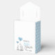 Caixas de chá de fraldas giro para seus convidados. Elefante de desenho animado e mamãe com balões cardíacos com palavras obrigado você e bebê. Bolinhas de pasta azul e branca. Personalize-os adicionando nome e data. Perfeito para a festa do bebê.