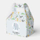 Esta caixa de chá de fraldas dos meninos azuis bonitos e caprichosos apresenta um elefante safari, com um padrão de selva que inclui um leão, girafa, zebra, crocodilo e plantas, e pode ser personalizado com os nomes dos pais e um obrigado curto que você envia. O safari da selva perfeito temia uma caixa de favores personalizada para o seu chá de fraldas de casais.