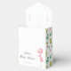 Caixa de favorecimento de chá de fraldas flamingo tropical adorável com cores rosa e verde. Use-o no seu chá de fraldas para incluir com seus favores. Personalize o texto com suas próprias informações. Ilustrada e projetada por Patricia Alvarez.