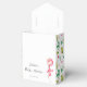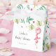 Caixa de favorecimento de chá de fraldas flamingo tropical adorável com cores rosa e verde. Use-o no seu chá de fraldas para incluir com seus favores. Personalize o texto com suas próprias informações. Ilustrada e projetada por Patricia Alvarez.