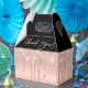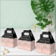 Uma elegante e luxuosa caixa preta para seu chá de fraldas que apresenta brilho suave de ouro rosa e "Obrigado!" em um roteiro de na moda. Personalize o nome da futura mãe e a data do chá.