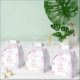 Caixa de favorecimento personalizado do Chá de fraldas Wonderland de inverno. O esquema de cores é muito giro em rosa e roxo com algum design de texto dourado/brilho. Placas de chá de fraldas rosa e roxo com flocos de neve fofinhos. Ilustração digital de Kristine Lee. Para obter mais informações, visite www.kristineleedesigns.com