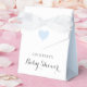 Caixa de Favoritos de Chá de fraldas Bonita com um design simples e minimalista com um coração azul pastel junto com o "Chá de fraldas" em letra química. Estas elegantes caixas de favor são uma forma excelente de adicionar um toque pessoal aos favores do seu chá de fraldas.
