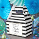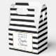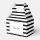 Com um fundo clássico de listras pretas e brancas, esta elegante caixa de lembrancinhas para chá de noiva de casal apresenta uma borda elegante em folha de ouro falso emoldurando os detalhes do seu chá de noiva em tipografia sofisticada e uma mensagem especial de agradecimento no verso. Criado por Thisisnotme