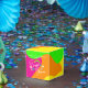 Chá de noiva retrô ousado e colorido com flores, arco-íris e símbolo da paz