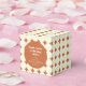 Esta caixa de lembrancinhas para chá de noiva inspirada no estilo retrô apresenta um padrão geométrico moderno em terracota e marfim, perfeita para adicionar um toque moderno à sua celebração. O design circular faz uma referência ao estilo dos anos 70, mantendo uma vibe minimalista e elegante. Ideal para chás de noiva com tema boho ou moderno, esta caixa foi projetada para fazer com que seus convidados se sintam apreciados de uma maneira única e elegante. É perfeita para guardar pequenas lembranças ou guloseimas e complementará perfeitamente a sua decoração. Faça do seu evento algo memorável com esta caixa de lembrancinhas chic e elegante.