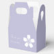 Dê a seus convidados, damas de honra, padrinhos de casamento, ou qualquer outra pessoa um tratamento especial com essas caixas de favores personalizáveis que apresentam um fundo pastel de lavanda com um delicado flor de cereja branca na frente e atrás da caixa. Ambos os lados também apresentam alguns exemplos de texto que você pode personalizar para seu próprio casamento ou evento. Certifique-se de verificar os outros produtos do Charming Sakura na Lavanda para criar um olhar verdadeiramente coordenado para o seu evento.